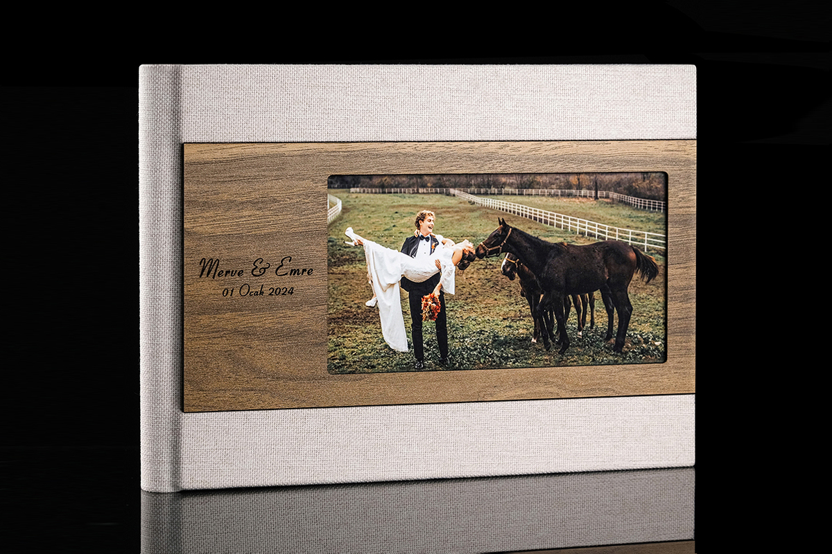 Introducing our bespoke, handmade digital photo album, a harmonious blend of modern technology and timeless craftsmanship. Each album is meticulously crafted with elegant wooden parts on the cover, giving it a unique and rustic charm that beautifully complements the high-tech digital display inside. The wood, sourced sustainably, is hand-finished to perfection, ensuring every piece is as individual as the memories it holds. Ideal for weddings, anniversaries, or any special occasion, this personalized photo album not only preserves your precious moments but also serves as a stunning keepsake that will be cherished for generations to come.